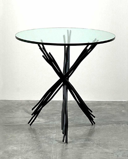 Painted bent steel rod and glass. H-17" Top-30x30".